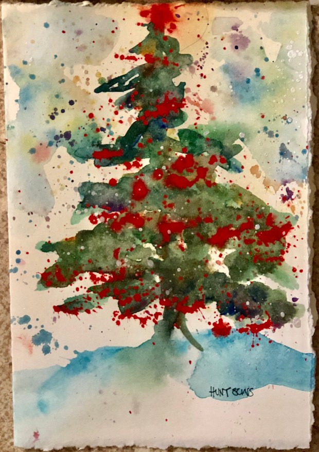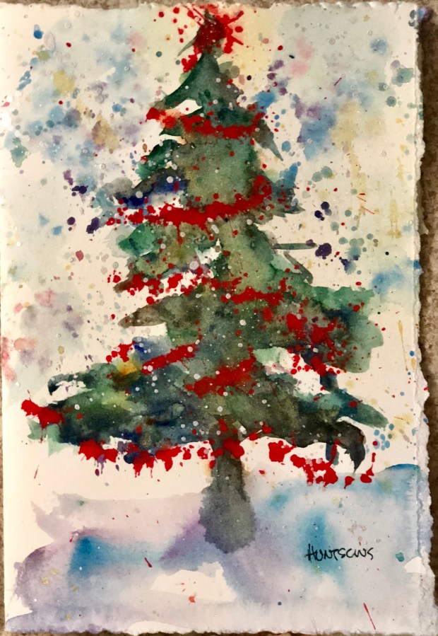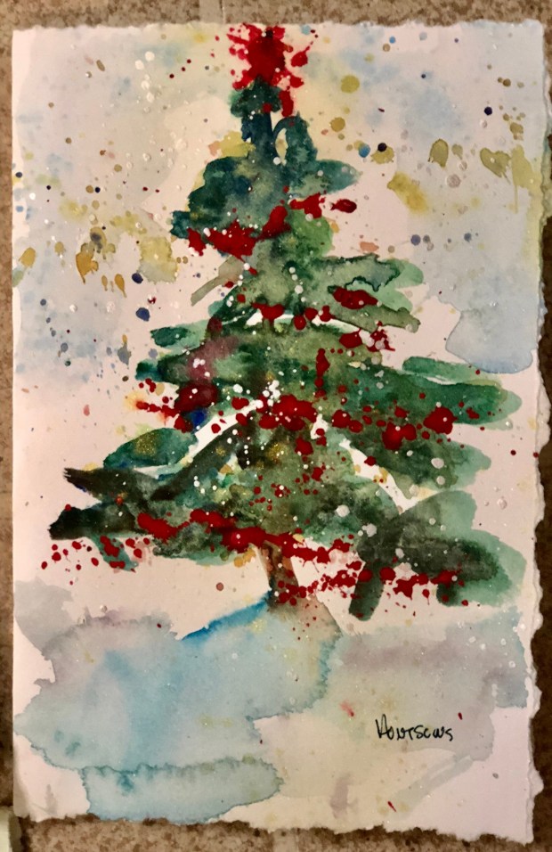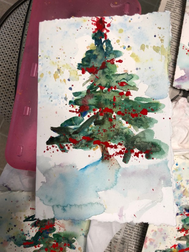 I made the tree topper by changing the angle of my splatter. Then I splattered in a line across the tree for garlands.