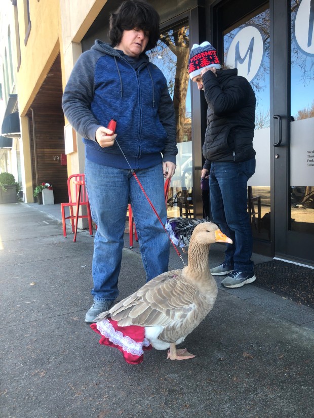 A nice couple walking their geese down Laurens. 😎 The geese love to be petted. They get excited and shiver. Soooo soft.
