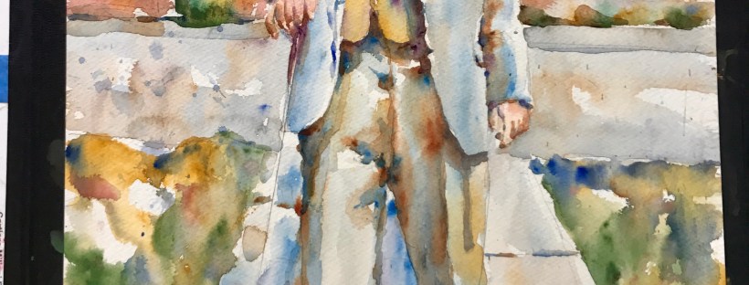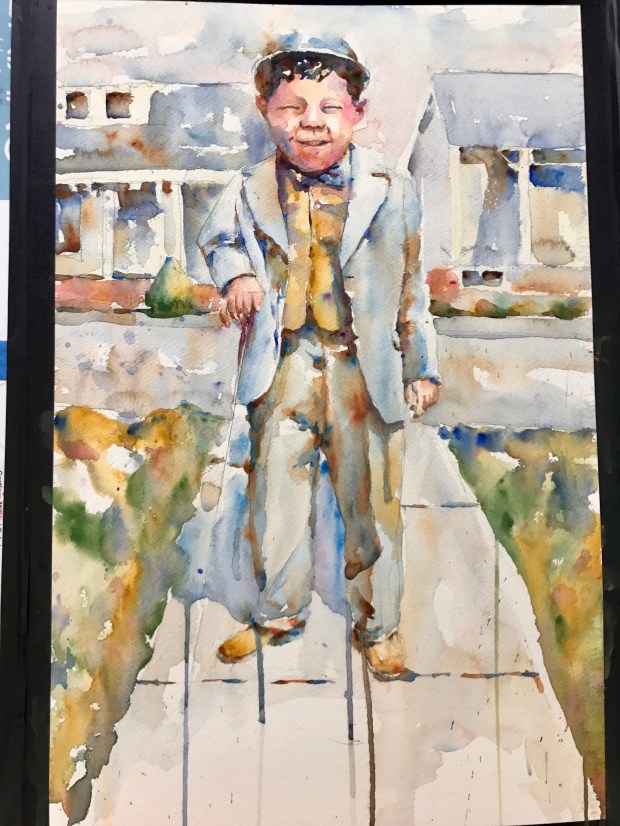 The Little Professor was painted from a photo of my dad when he was three. His mother used to dress him up and parade him before her friends who would ask him questions. Since dad skipped two grades I am sure he knew the answers.