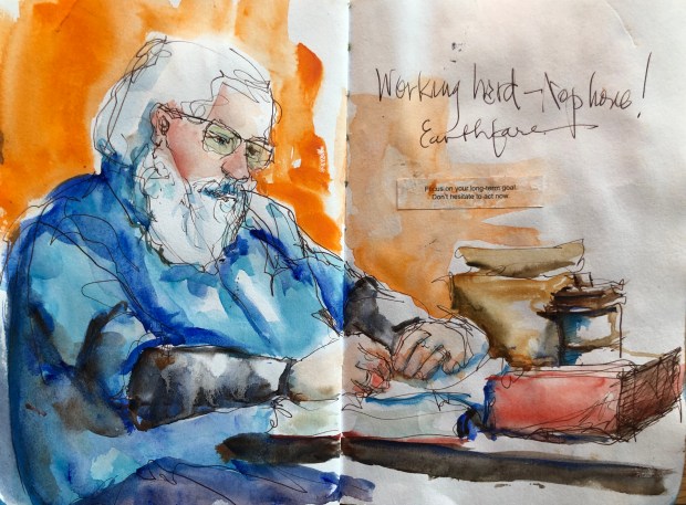 Working hard @earthfare #twisbee #stillmanandbirn #ink #watercolor #art #painting #artist #painter #aquarelle #georgia #artist #charlesreid #urbansketcher #urbansketchingaugusta #urbansketching #augusta #earthfare