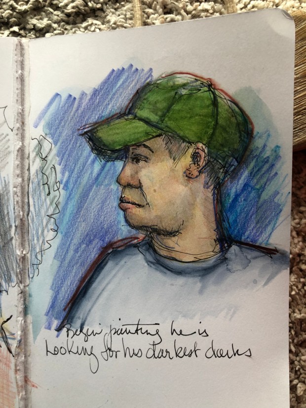Colored him with my watercolor pencils using yellow ochre burnt sienna a grey.