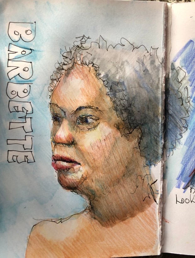 Quick ink sketch of our model Barbette #MarioARobinson Watercolor pencil @marioarobinson @aliapainter #watercolor #art #painting #artist #portrait #aquarelle #northcarolina #raleigh #marioarobinson #watercolor #painter #aquarelle #drawing #sketching nudesketch #portraits