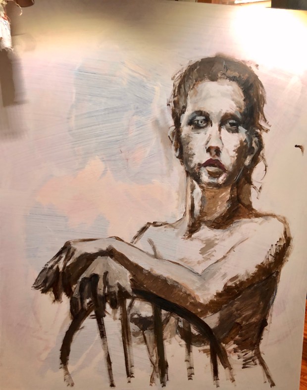 She wiggles so much she’s hard to draw and paint so I finally just threw paint on her.