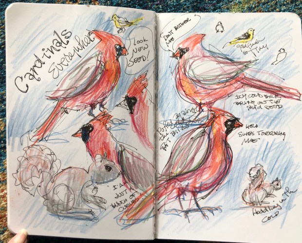 #cardinals #outmybackdoor #nature #watercolor #animals #birds #squirrel #drawing #sketchbookskool #cardinals #naturalworld #savannah #savannahriver #augusta #mixedmedia #art #artist #wildlife #stillmanandbirn #sketching #drawing