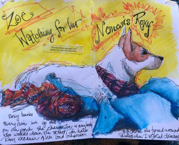 Zoe is on the job the minute my neighbors pointer comes outside barking. She doesn’t even like to see Roxy in the her front yard Because Roxy charges thru the bushes line at Zoe as she peacefully does her business barking incessantly.