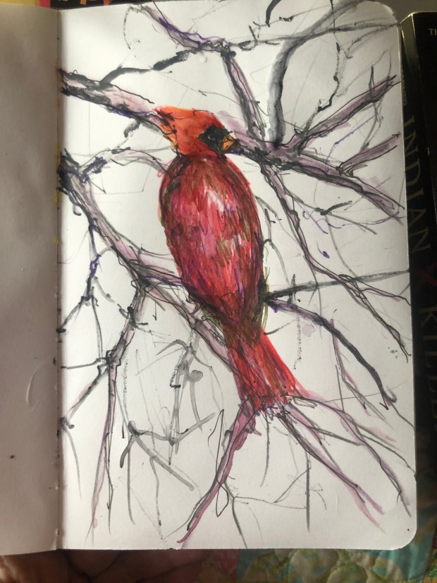 #cardinals #outmybackdoor #nature #watercolor #animals #birds #squirrel #drawing #sketchbookskool #cardinals #naturalworld #savannah #savannahriver #augusta #mixedmedia #art #artist #wildlife #stillmanandbirn #sketching #drawing
