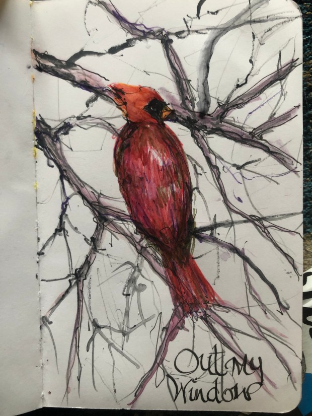 More playing with my Lamy Joy. Watercolor sooner or later. #Lamyjoy #ink #outmywindow #watercolor #drawing #sketchbookskool #cardinals #naturalworld #eastatlanta #atlanta #mixedmedia #art #artist #stillmanandbirn #sketching #drawing