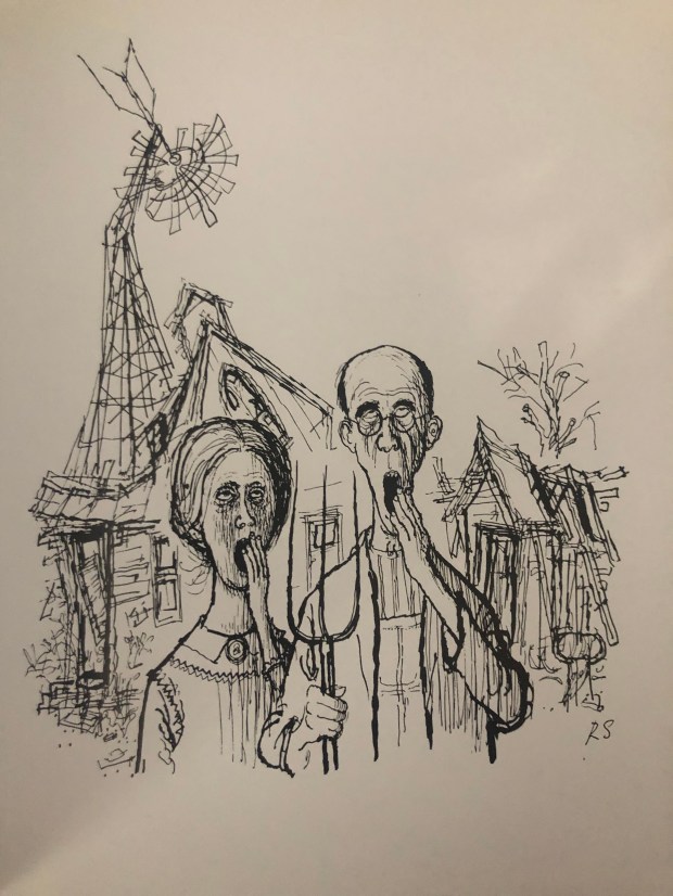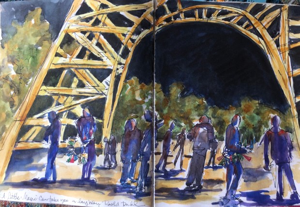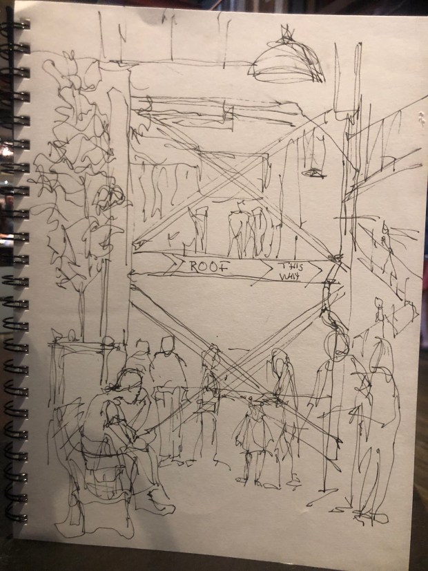 Think I will draw the scene while I listen to tv. Lol. Can’t watch and draw right.