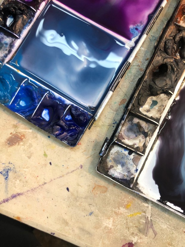 Spent half the day looking for paint. How can I be out of cobalt van dyke brown AND dioxzine purple. This method of painting uses shovel loads of paint. Need to buy the BIG tubes not the 16″5 oz. shoulda added to my Blick order. Sigh.