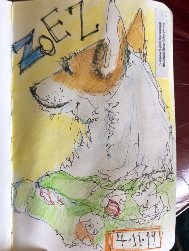 She’s spent the last two weeks either sitting in my lap or next to me. Here she is watching something out the window holding still long enough for me to draw her with my Lamy Ef.