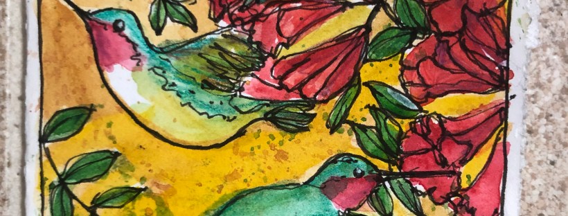 To console myself as I watched the fire I made this card last nite for a sick friend who loves hummers.