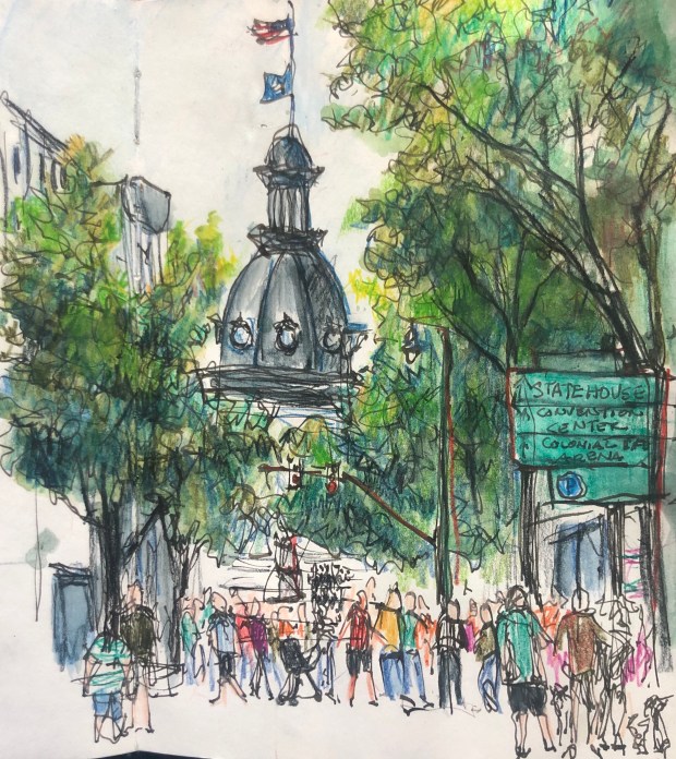 Drawing the state capitol #urbansketching #ink #lamyjoy #stillmanandbirn #columbia #sc #southcatolina #mainst #drawing #sketching #streetfestival #downtown #Sketchbookskool #sodacity