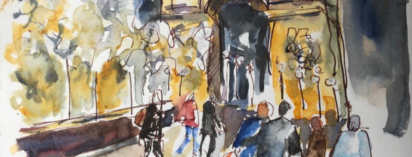 A sketch I did at Hunans during Masters Week. The guy on left works for NBC sports and was having an avid discussion on shots for tv with his coworker who walked off before I got a chance to draw him. Not my fav sketch. Should have left his hat off which is how I drew him first.