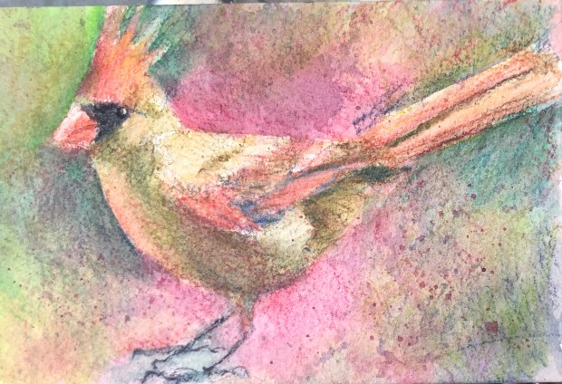 Day 2085 A bird see the bird June 6, 2019 A mama cardinal. Watercolor paper on Kilimanjaro. That’s it for tonite. Headed to bed. M Xoxoxox Share this: Click to share on X (Opens in new window) X Click to share on Facebook (Opens in new window) Facebook Click to share on Tumblr (Opens in new window) Tumblr Click to share on LinkedIn (Opens in new window) LinkedIn Click to share on Pinterest (Opens in new window) Pinterest Like Loading... Related