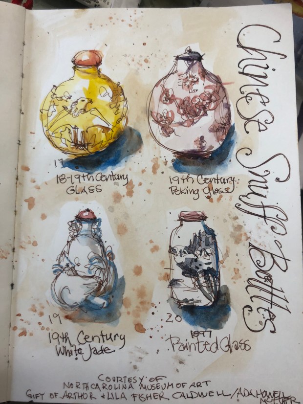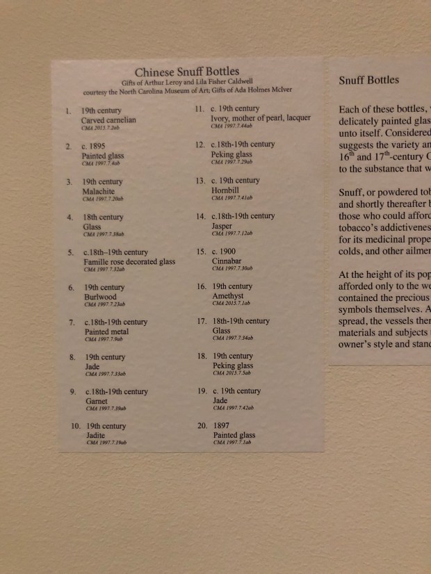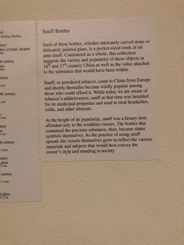 Snuff jars from the museum. Hmm I wonder if they sell them on eBay. One could hope. Like rows of tiny gems. Two inches tall at most.