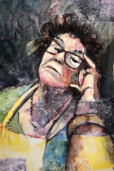 Then we added watery Dr PH Martin watercolor. I actually drew with the end of my perla paint brush dipped into the watery dark hair paint to get the thin lines. I also used my Isabey squirrel mops. Did my Charles Reid splatters. Turning it into a soppy mess.