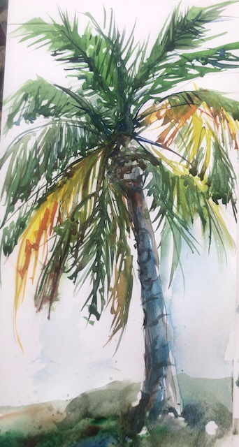 Number 3 and my favorite. I used a dagger brush in the palm fronds. And my 10 Charles Reid sable on the trunk.