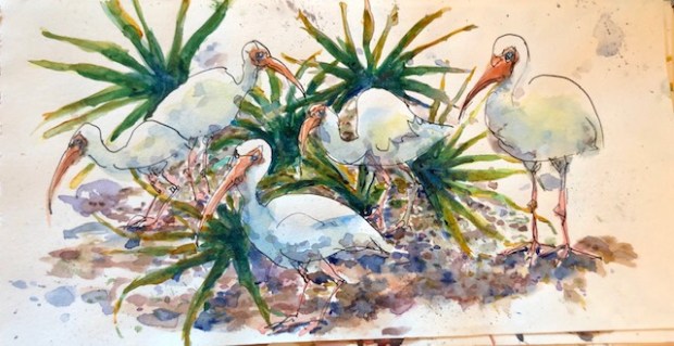 You know I love to draw a bird. And ibis are so interesting. They just about lose so you can draw them. These were drawn at the Kew West Wildlife Center here. Found out recently they live in Augusta too.
