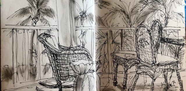 Out the window at the condo. Kinda like this. Think I MIGHT not paint it or add a bit of color just a little. Will think about it.