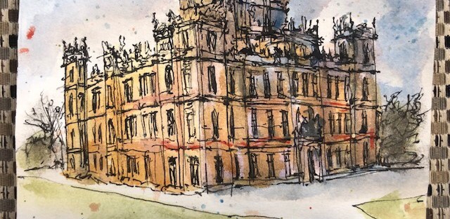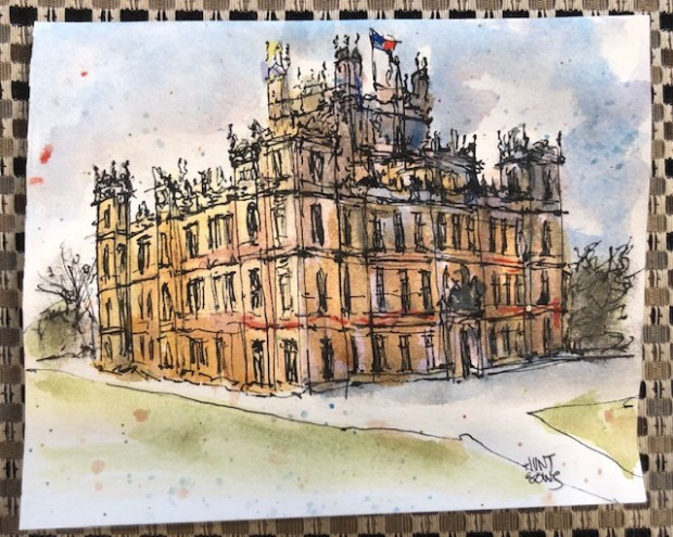 Downton Abbey is a lot harder to draw than you would think. It took about an hour to draw and it’s only about 4×6″. For once I actually used a pencil before I inked it.