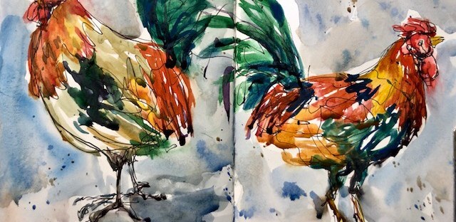 A few more parking lot chickens oops roosters from Key west Wildlife Rescue. Poor things having to live out their lives in a Parking lot. The big buff guy actually spurred the other ones. Meany.