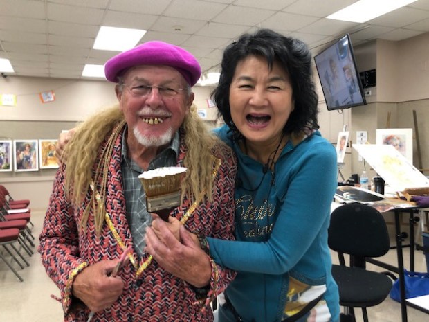 Joe Miller aka Cheap Joe and Fealing Lin. I think he might be dressed as Van Gogh if he loved to be an old man. Joe is a Van Gogh authority and does a delightful one man show about Theo Van Gogh Vincent’s brother which he has performed all over the US including the National Museum of Art in DC and the Met in NYC.