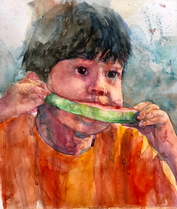 To say he’s been a struggle is an understatement but he’s getting there. He needs a wash of yellow ochre or quin gold to knock back some of the pink because he’s part Indonesian and my niece says her son is too pink!!