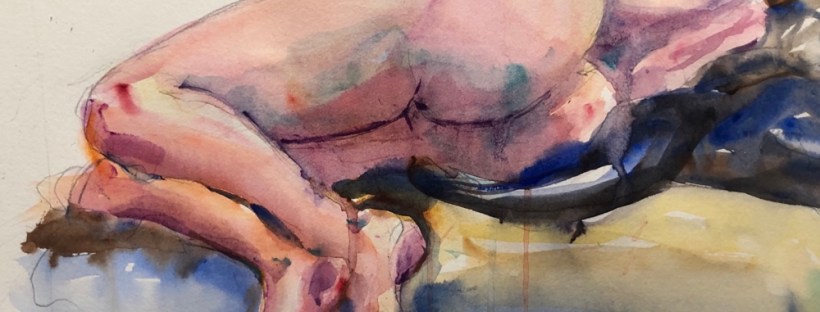 15×22 cold press Fluid. Hmm I have a whole roll of gesture drawings too. Was not thrilled doing another reclining pose. To top that off he went to sleep and his head started tipping toward me. And I mean tipped ALOT!! Not just a little.