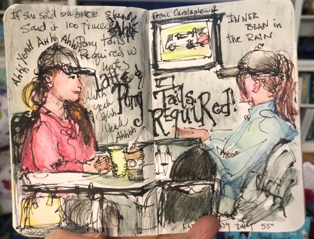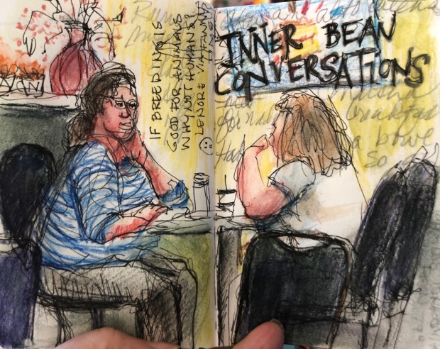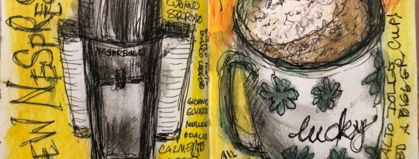 messing around with the background. Adding layers and letting them dry adding more layers. Splattering. Wiping out the splatters and on and on.