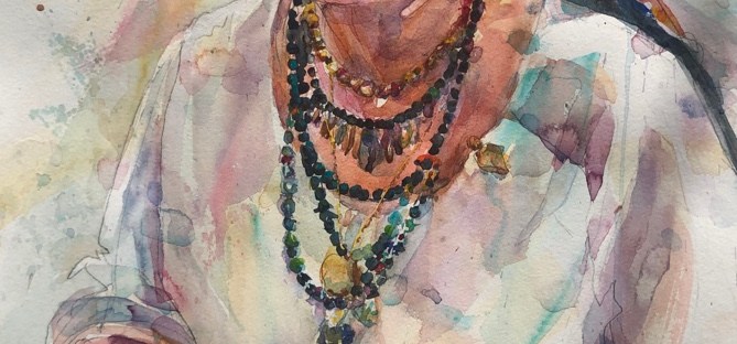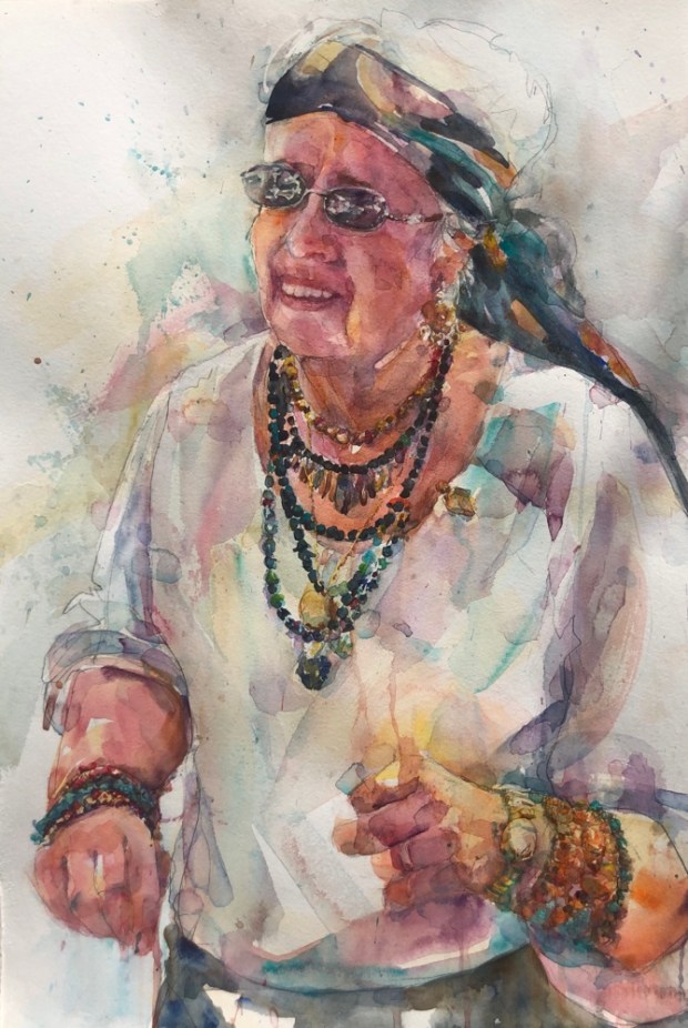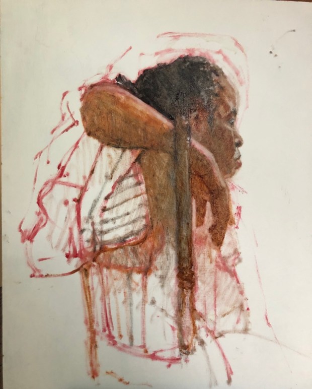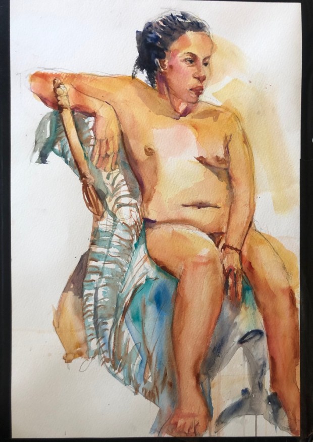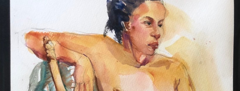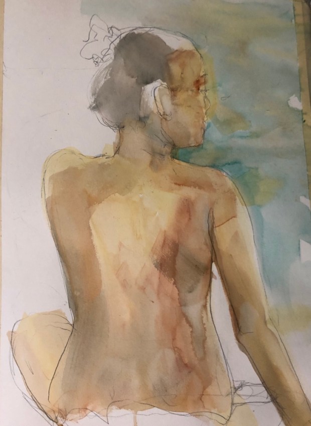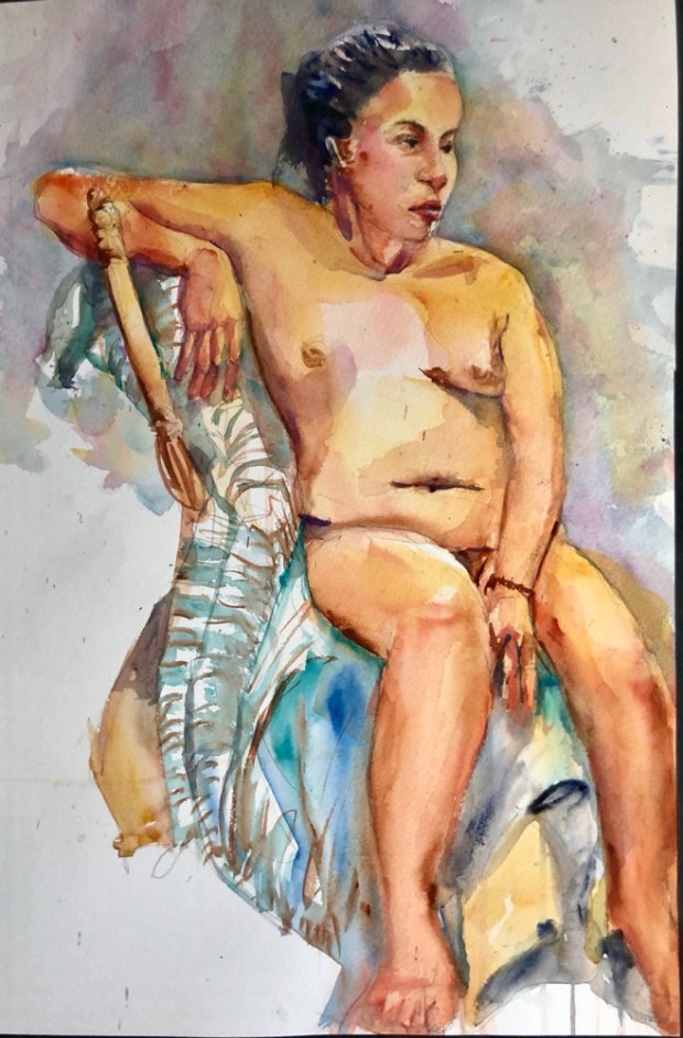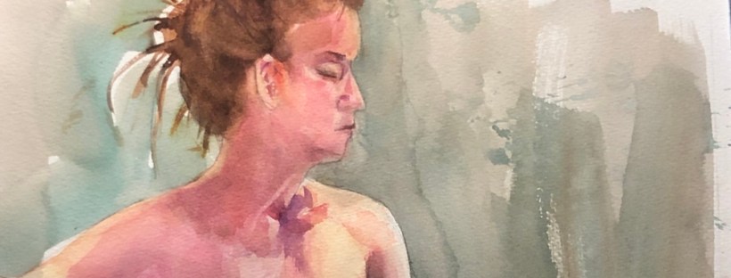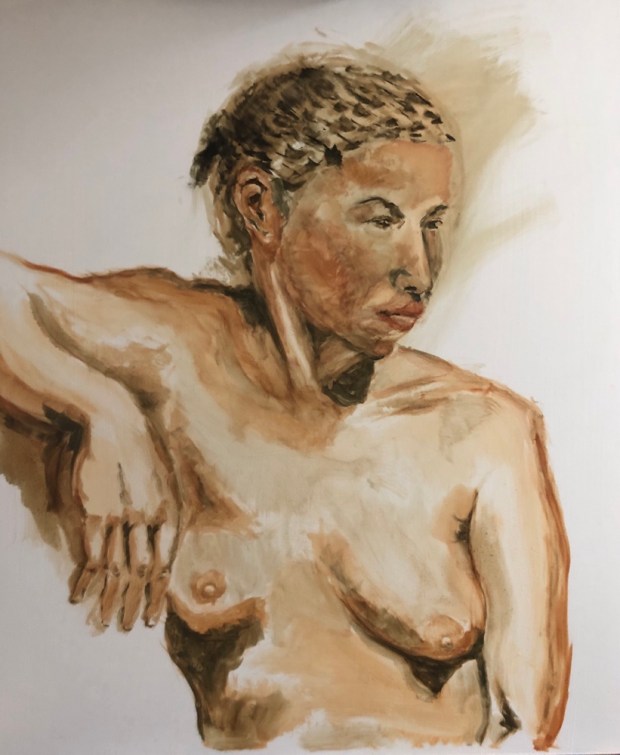 The hair is burnt umber and ultramarine. Not sure why I left the divot on top of her head but will fix that sooner or later.