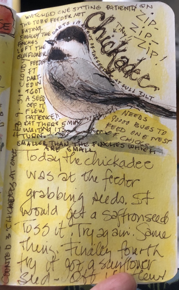 Is what I think of when I think of a chickadee. Even it’s name is adoreable. Such a tiny little thing. And busy. Usually darting in and out of the feeder.