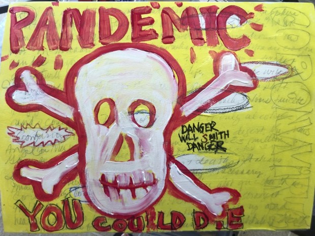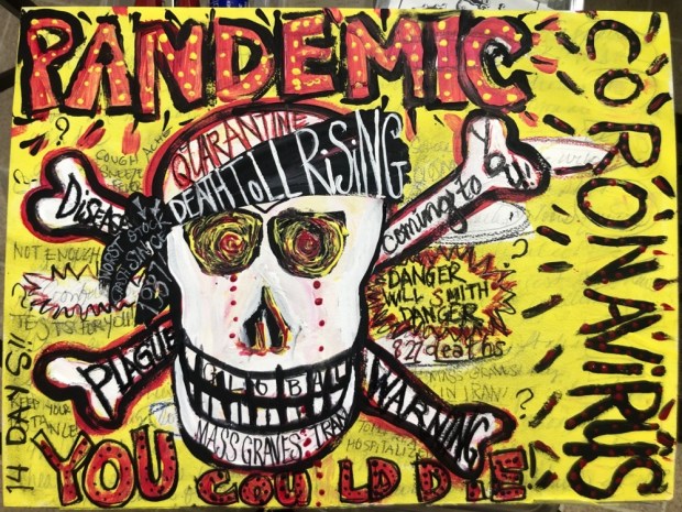 Looks like Basquiat.  Well if you get quarantined, you can paint and knit up a stormâ¦. Alexis Sent from Mail for Windows 10 From: Margaret McCarthy Hunt ArtSent: Thursday, March 12, 2020 9:15 PMTo: aaronson59@gmail.comSubject: [New post] Today I painted. Margaret Hunt posted: "Not the usual a journal page a la Juliana Coles style. It’s not done but thought I would share it with you. I woke up thinking about this. When you do that you have to make it. Going to write the number of cases world wide and the deaths on it sooner or"