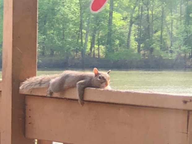 Like this guy I am tired. Always a hoot laying around subbing on the porch rail.