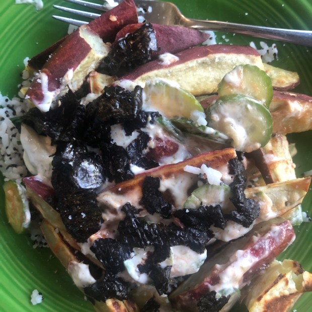 Oh and I cooked dinner. Japanese’s sweet potato sushi salad with sticky rice and nori.