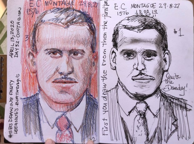 I “fixed this sketch. Used an old ledger from dads business years ago to cover up the smeared ink.