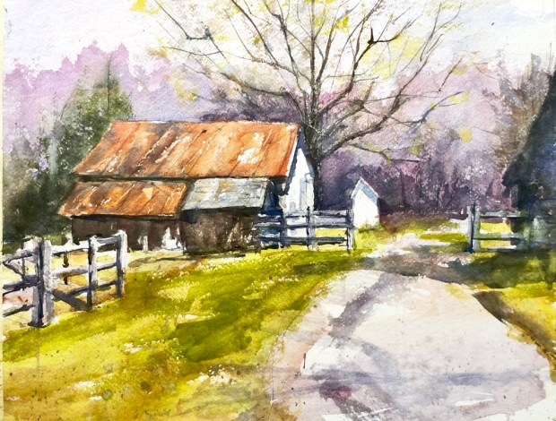 Digging around for my 140 # rough press Fabriano I found this. Always liked it. Still have the photo to finish it. Full sheet on Waterman cold press I think.