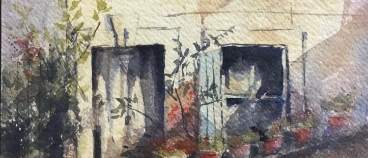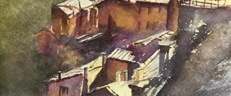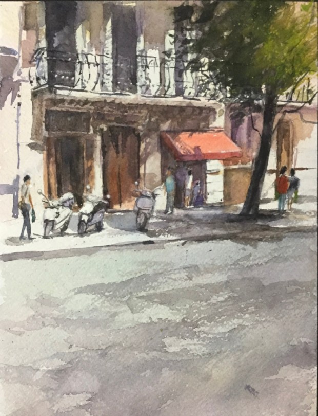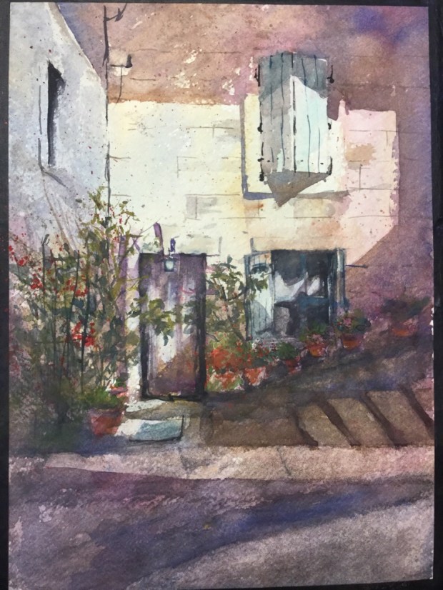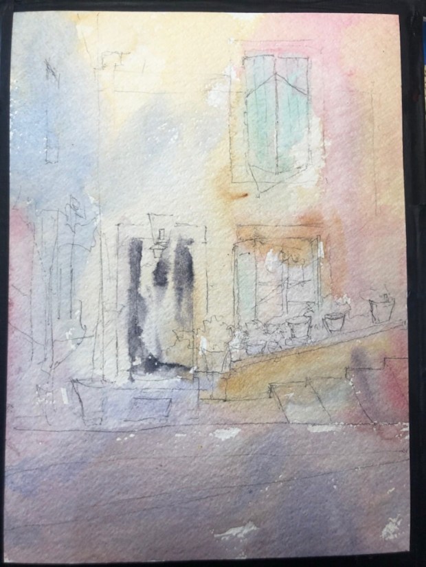 Foreground wash done. May be too dark. Painted fast and loose with a large kolinsky sable.