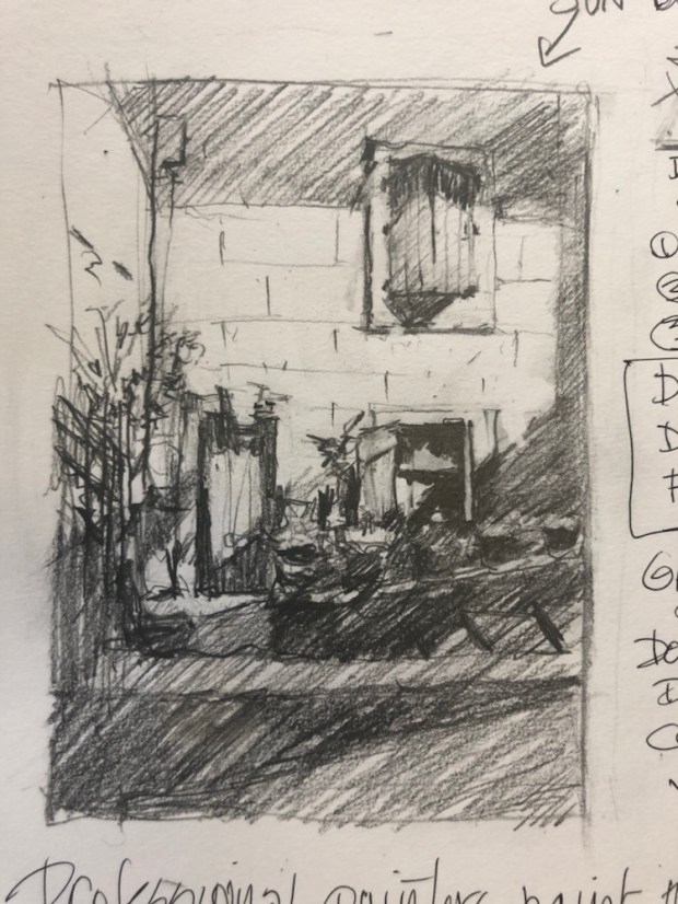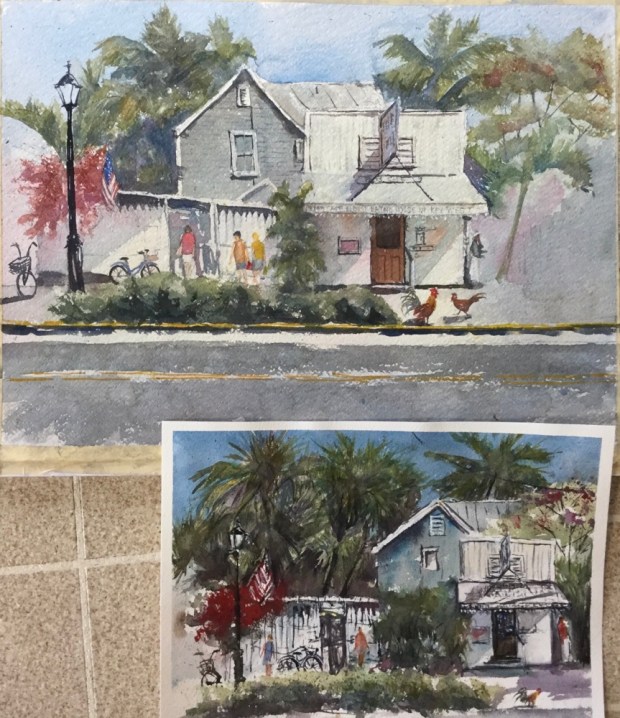Then I spent the rest of the day working on a value sketch, a sketch and a first wash of Pepe’s in key west.