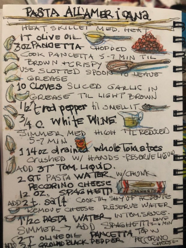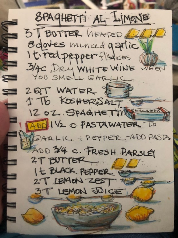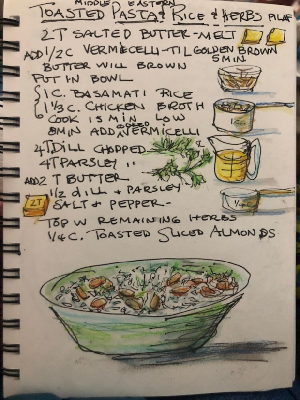 Been drawing recipes that sound good esp on Saturday from PBS cooking shows.