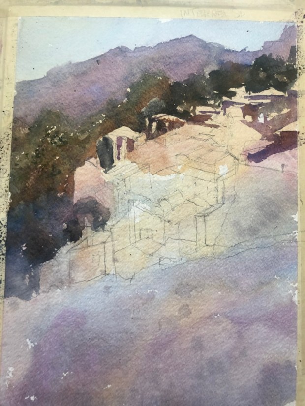 The value sketch. Wow that was tough all by itself. Looks like a bunch of jumble to me. And I was bad about not following it. Soo much to think about, do and learn during one of the paint along with Vlad Yesilesev. I will say he does a wonderful job. Patient Sharing kind. Endlessly answering the same questions with graciousness and interest and much patience from his students.