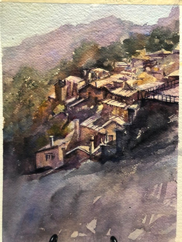 The sketch. I got lost in the roof tops. So many jammed together. Didn’t even draw half the chimneys. Oops