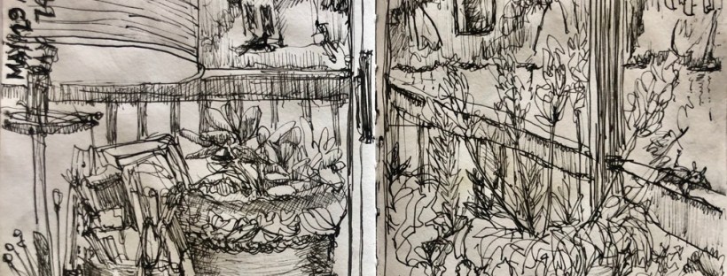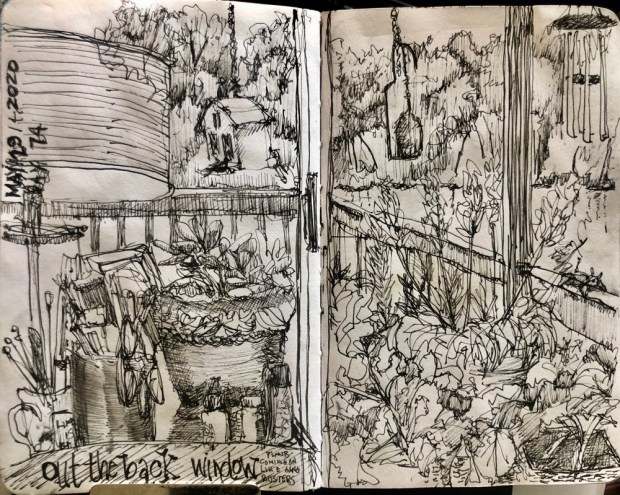 Out my back window. It needs some color I think. To distinguish between all the jumble of plants growing on the porch.