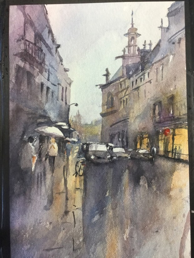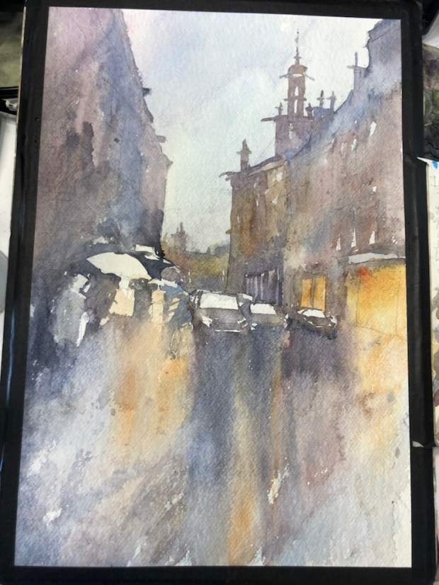 Here it is lifted. After I looked at it for a while I decided it had to have some more darks especially under the cars. They looked like they were floating.