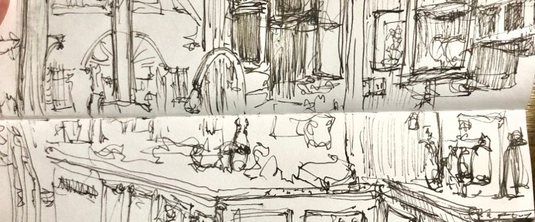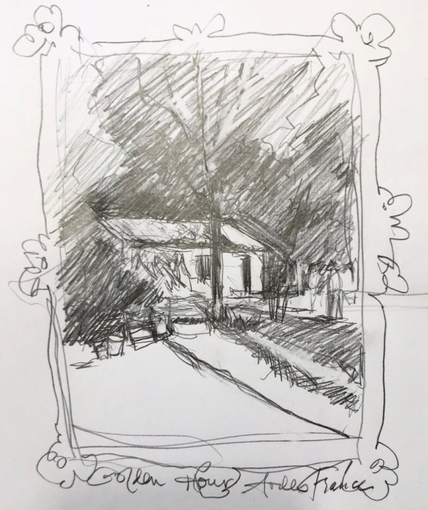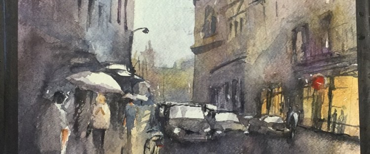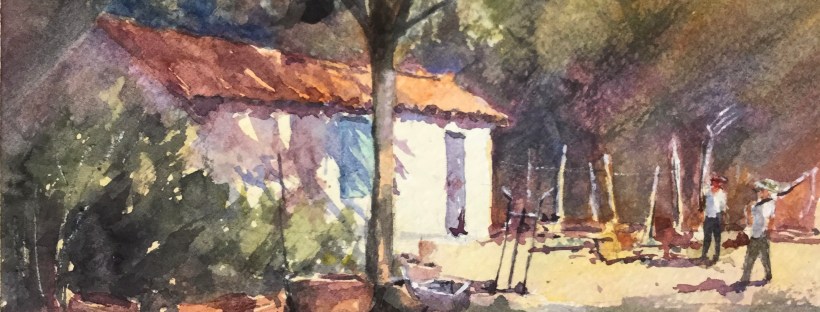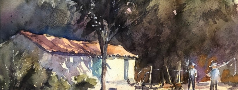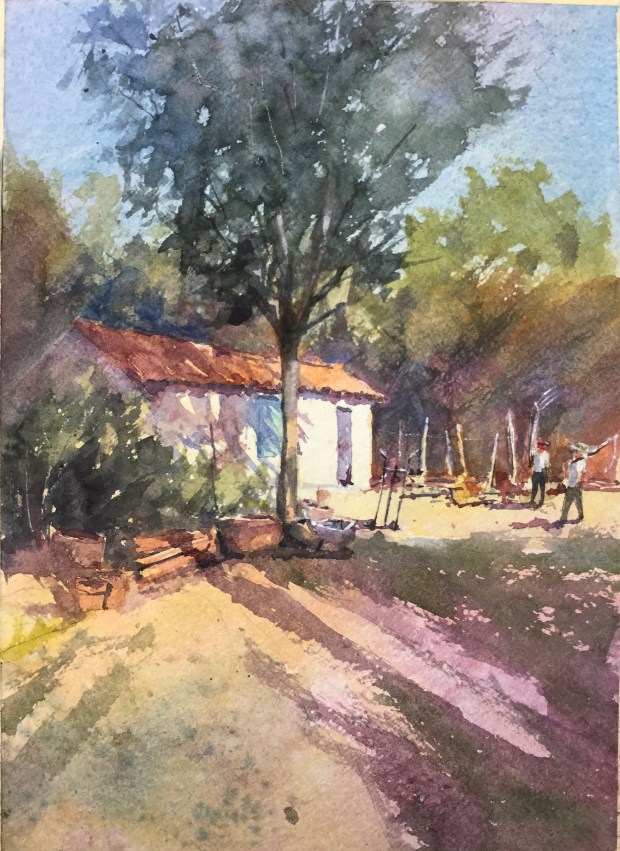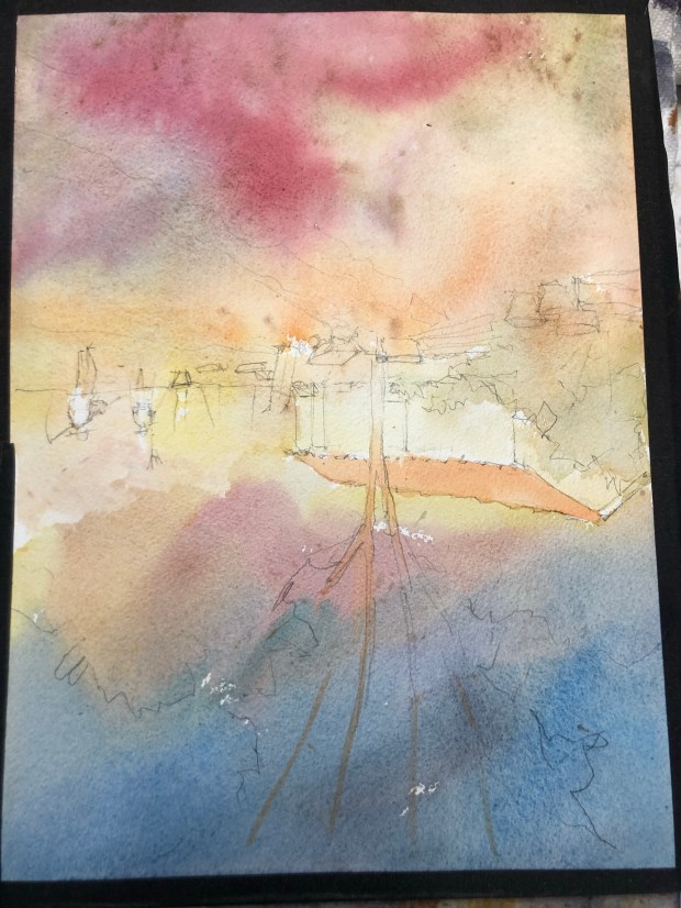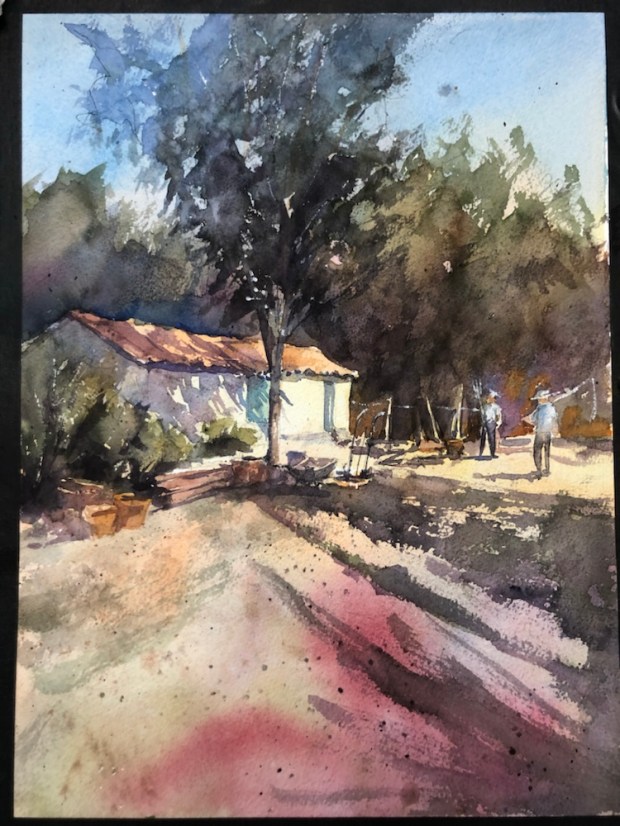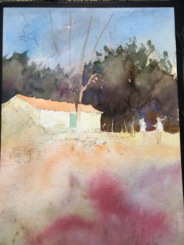 Golden Hour, Arles France today. Paint along with Vladislav Yesileyev. Really don’t like alizarin in the foreground. Thinking I can grey it by adding green. And that’s why I wrote thinking about it.
