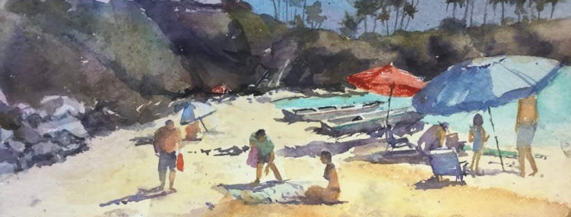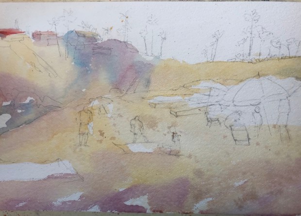 Foreground was yellower til I tried to fix the red by adding green to it. Now why didn’t I think that alizarin red and green is a classic combo for a grey to a black depending on the water.