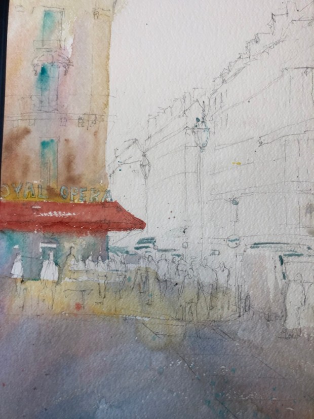 the sketch 300# half sheet Fabriano I used masking fluid to reserve some whites.