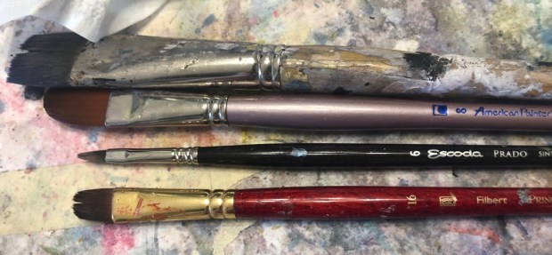 I painted a lot of the foreground with these brushes. That was fun. My acrylic paint brushes.