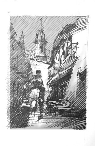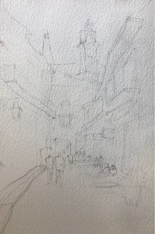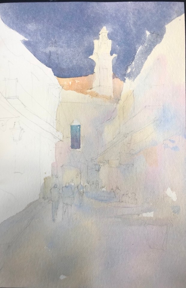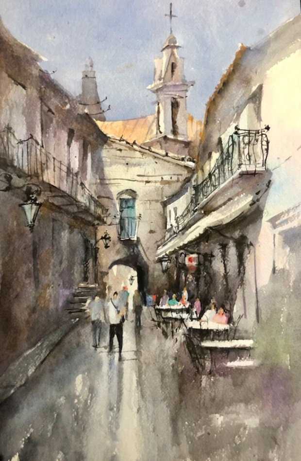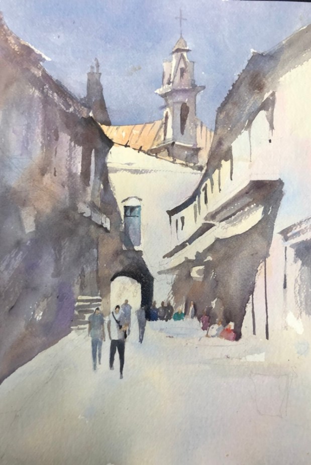 Old town Havana Paint along with Vladislav Yesileyev. Fabriano 300 lb rough paper which I have decided I now hate. It kept holding edges. Put paint on and there was a hard edge. What the heck. It’s not suppose to do that at $16 a sheet. This is a half sheet.