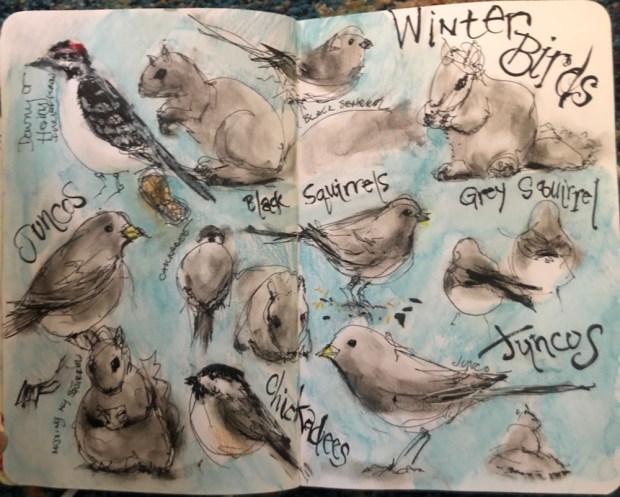 I realized today I missed the silly ravenous squirrels hanging from the bird feeders often launching themselves into space to leap onto them.