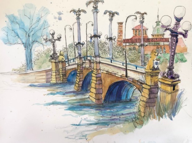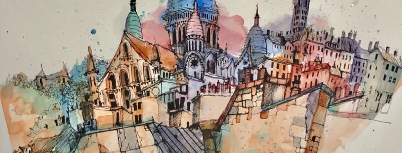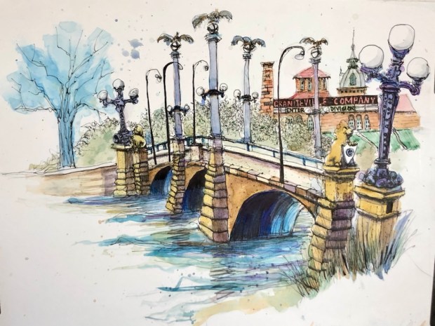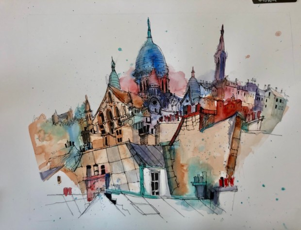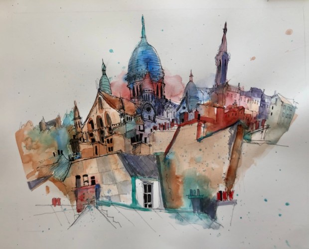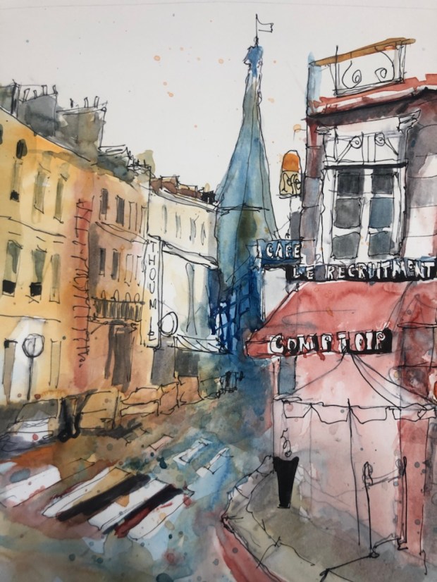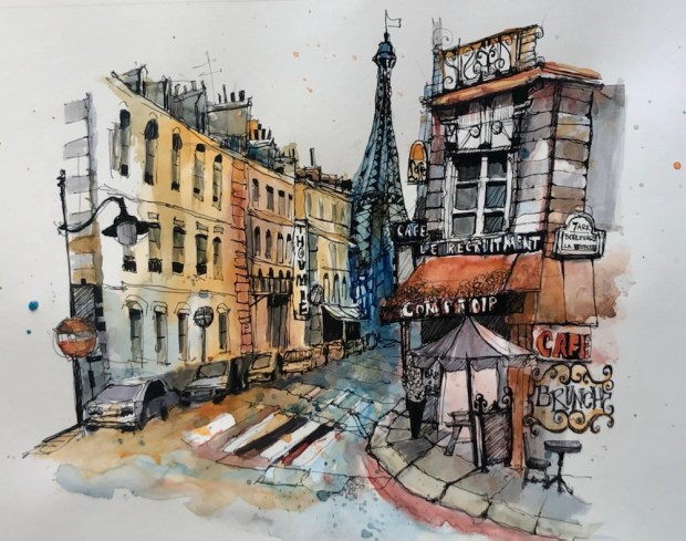 More trees and buildings. My details kept mushing into the backgrounds. Oops. Too wet.
